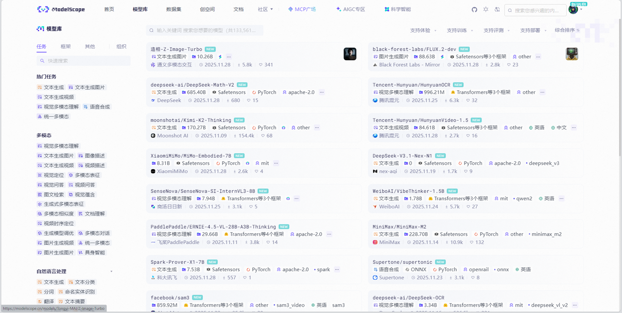 魔搭社区以"模型即服务"(MaaS)为核心理念,汇聚了数千个优质机器学习模型,覆盖计算机视觉、自然语言处理、语音识别、多模态理解等全领域。开发者只需几行代码即可调用这些经过工业级验证的AI能力,将复杂的算法能力快速集成到自己的应用中,为"AI识菜通"提供了强大的AI内核支撑。
