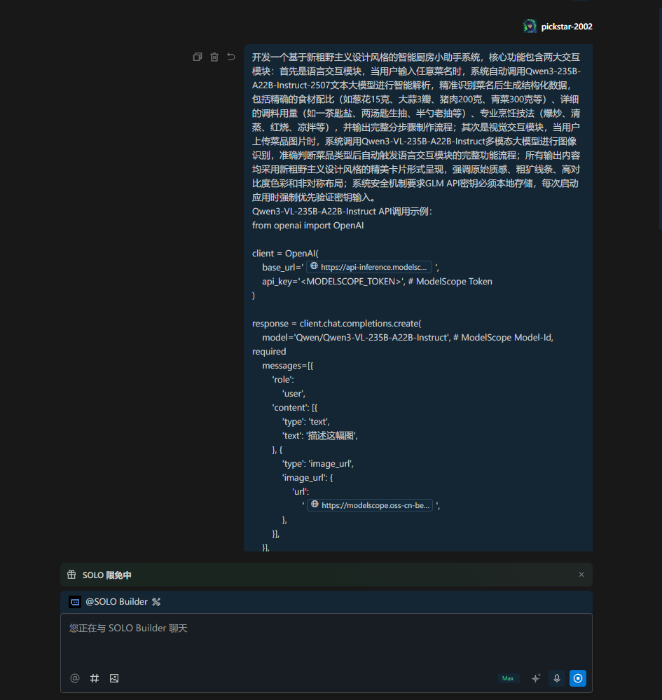 项目成功开发出具备工业级品质的智能厨房助手应用,实现从AI模型调用到用户界面的完整链路,验证了现代AI开发工具与方法论在实际应用中的高效性与可行性。通过魔搭社区的模型能力与TRAE平台的开发效率,大幅降低了AI应用的开发门槛,为未来AI应用开发提供了可复用的范式。