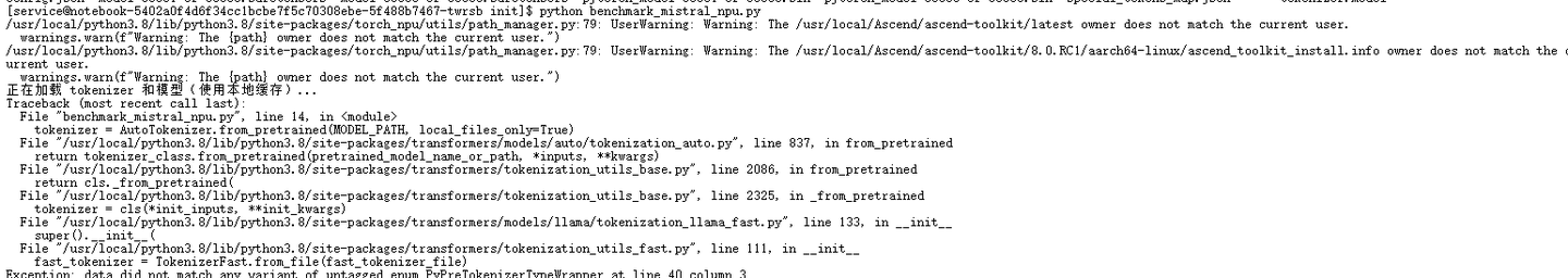 AutoTokenizer尝试加载tokenizer.json(fast tokenizer)时,tokenizers库无法解析,于是报出 “data did not match any variant...” 的 Rust 层解析错误。