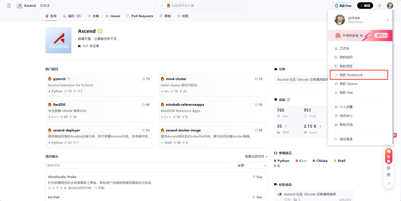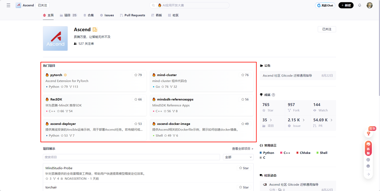 - 昇腾开源仓库:https://gitcode.com/ascend