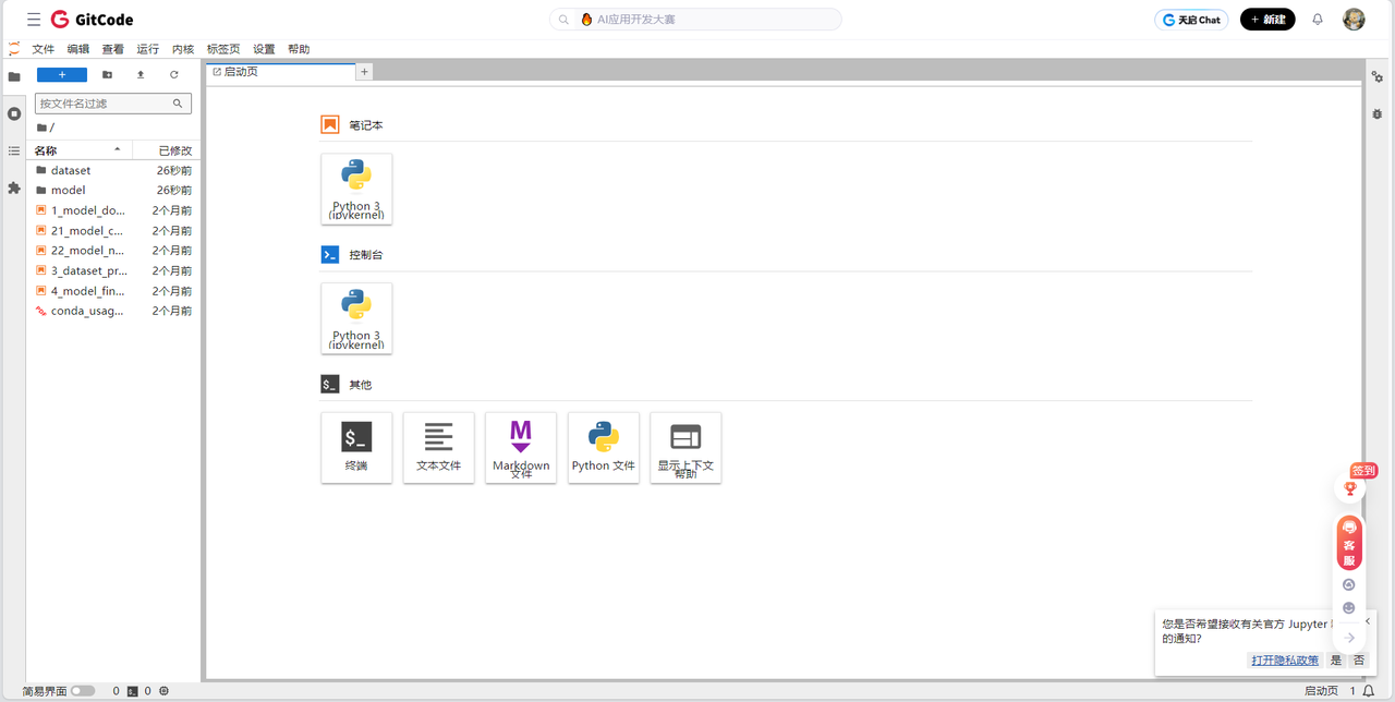 GitCode 的 Notebook 功能,打造了一个专为 AI/ML 开发者设计的云端交互式编程空间。用户无需在本地安装依赖、配置驱动或搭建框架环境,只需打开浏览器,就能立即编写、执行和共享代码。这一能力特别契合国产 AI 芯片(如昇腾 NPU)的开发需求——它预集成了适配的软件栈和驱动支持,让开发者可以“开箱即用”地测试大模型在昇腾硬件上的推理或训练效果,真正实现“所想即所跑”,大幅降低国产算力平台的入门门槛。