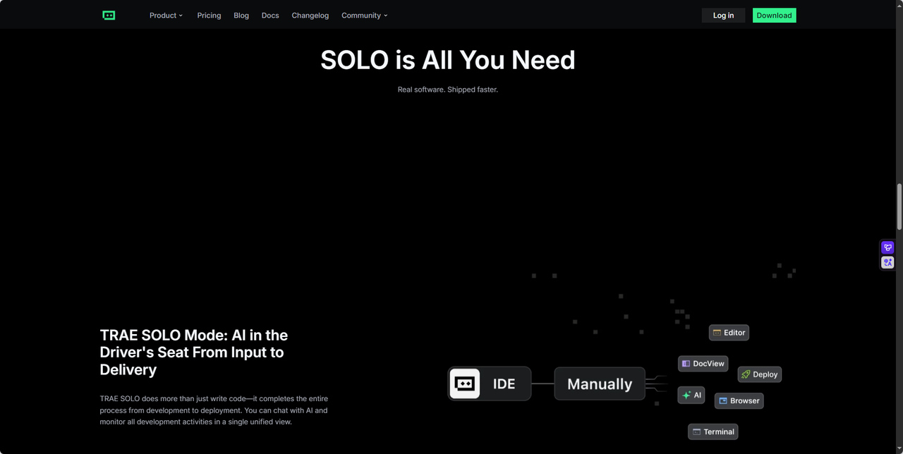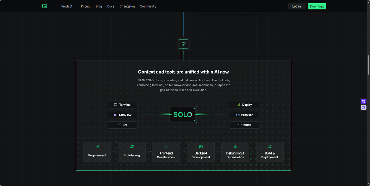 Trae Solo 不仅是一款开发工具,更像一位“全栈 AI 工程师搭档”。它从需求理解开始,自动生成产品文档与技术架构,再逐步完成项目初始化、依赖安装、组件开发、错误修复与部署上线,全程丝滑流畅。其上下文感知能力极强——即使中途打断或修改需求,也能基于已有上下文智能调整,确保逻辑连贯。更难得的是,它对开发者体验极度友好:自动处理依赖冲突、一键修复语法错误、实时预览效果,真正实现了“Talk. Think. Ship.”的开发哲学。作为国产上下文工程 IDE 的先行者,Trae Solo 极大降低了复杂 AI 应用的开发门槛,堪称“国产之光”。