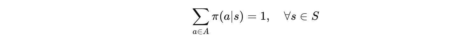 对于随机策略,所有动作的概率之和必须等于1: