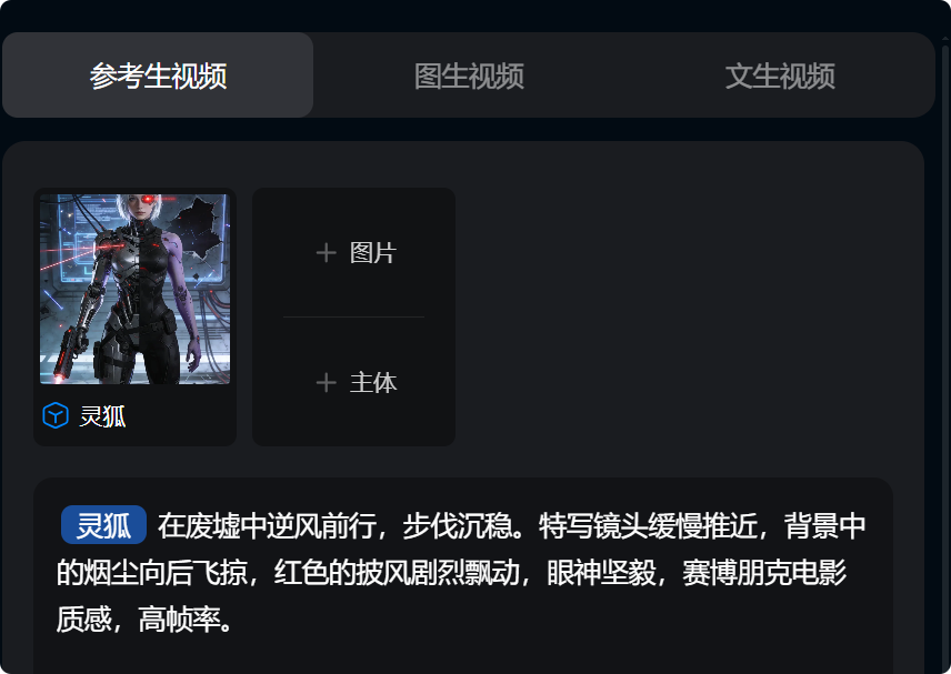 ✅目标:将刚才生成的科幻角色做成一段电影感的视频片段。