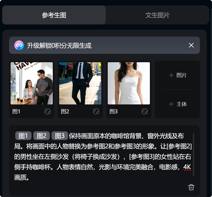 在文娱产业的内容生产中,AI绘图最大的痛点从来不是“画不出来”,而是“改不准确”。例如,保留背景换个人或在指定位置放个杯子,往往比重画还难。在面对多图融合时,也常出现风格割裂、光影打架,甚至“换脸如换头”的尴尬。