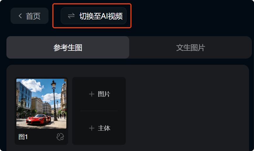 2.输入指令:将图片中的红色跑车 “改为哑光黑色跑车,增加碳纤维质感”。