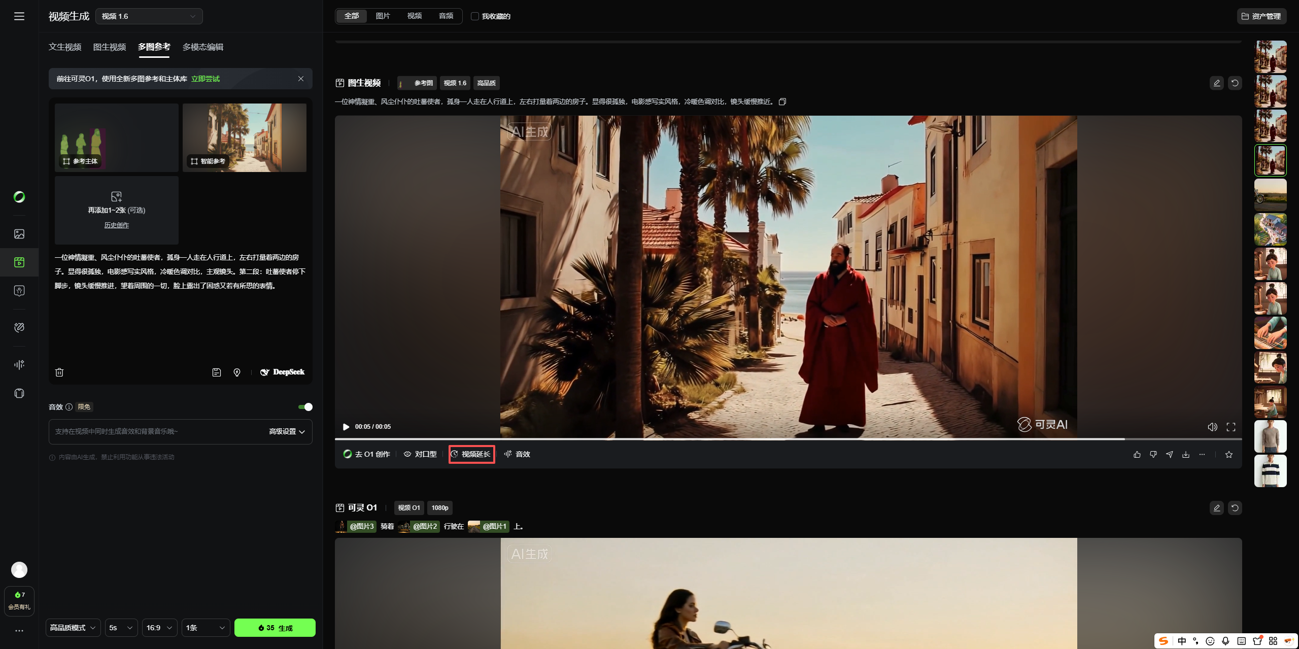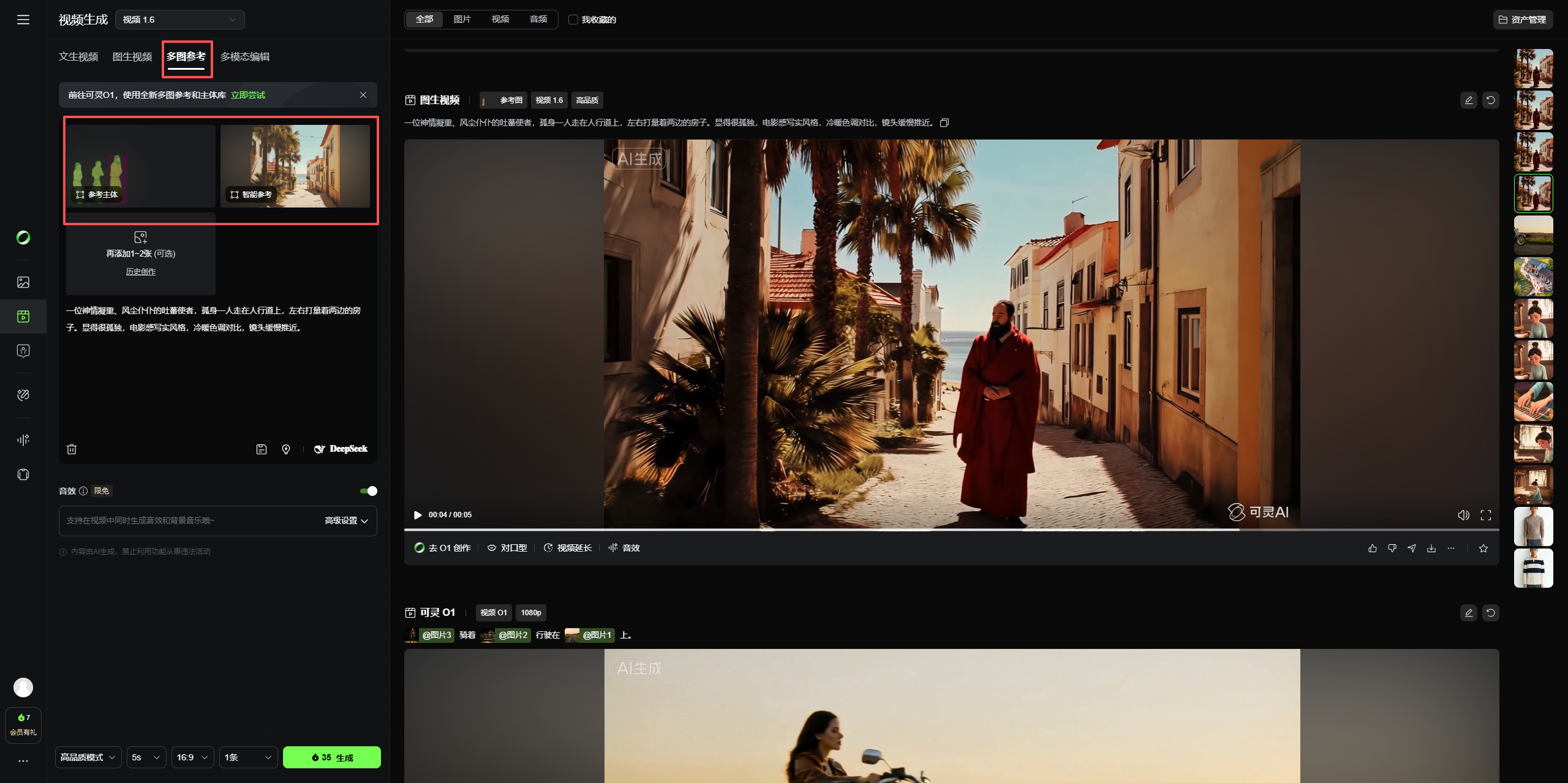 可灵 AI 多图参考封神玩法!吐蕃使者闯三亚10秒成片|主体框选+融合全攻略