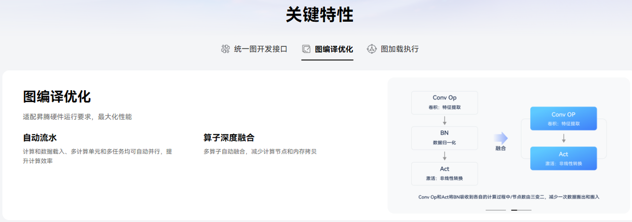 - 图编译优化:内置图引擎 对计算图进行融合、并行化、内存复用等优化。例如,将连续的