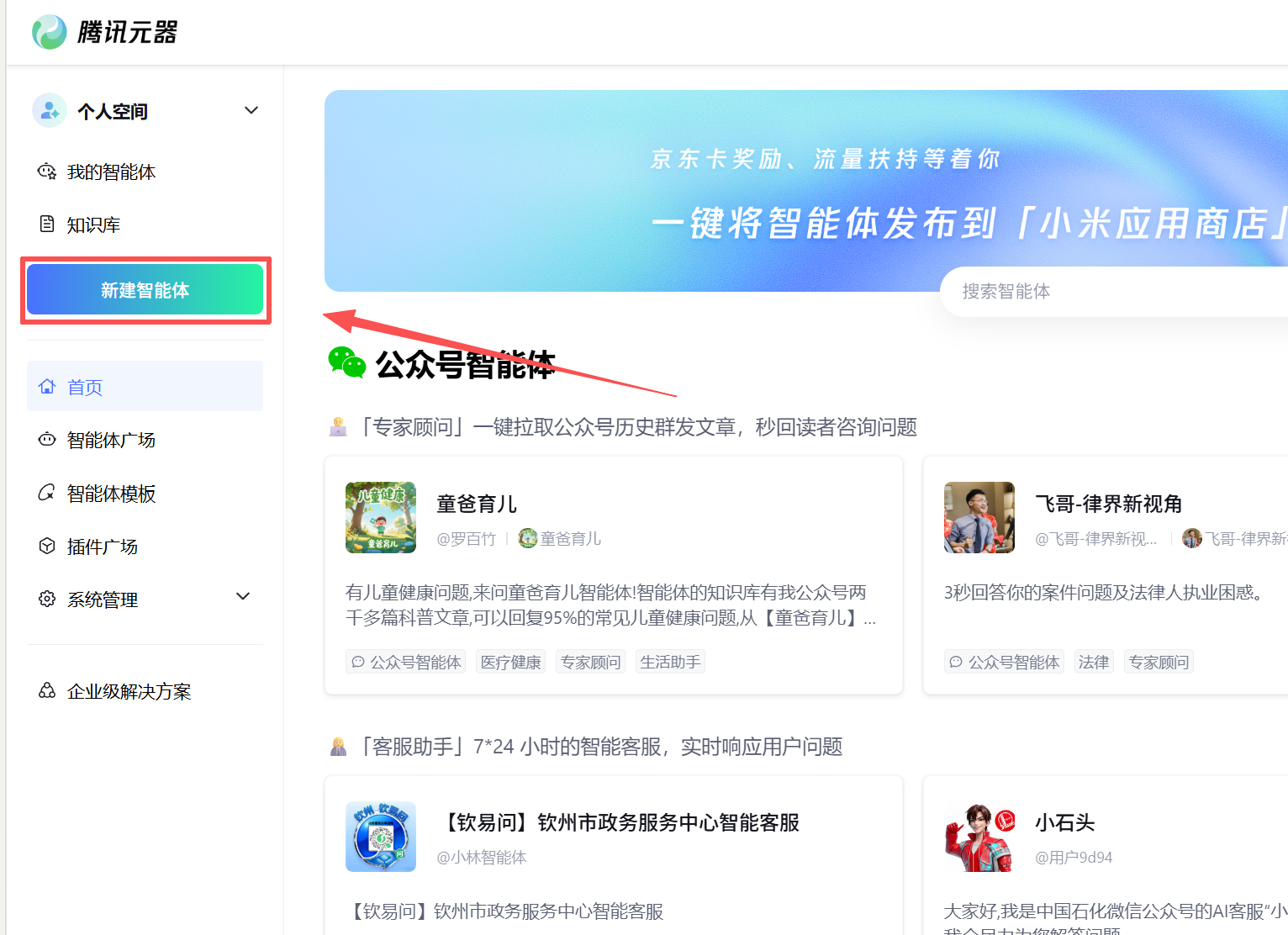 选择公众号智能体。