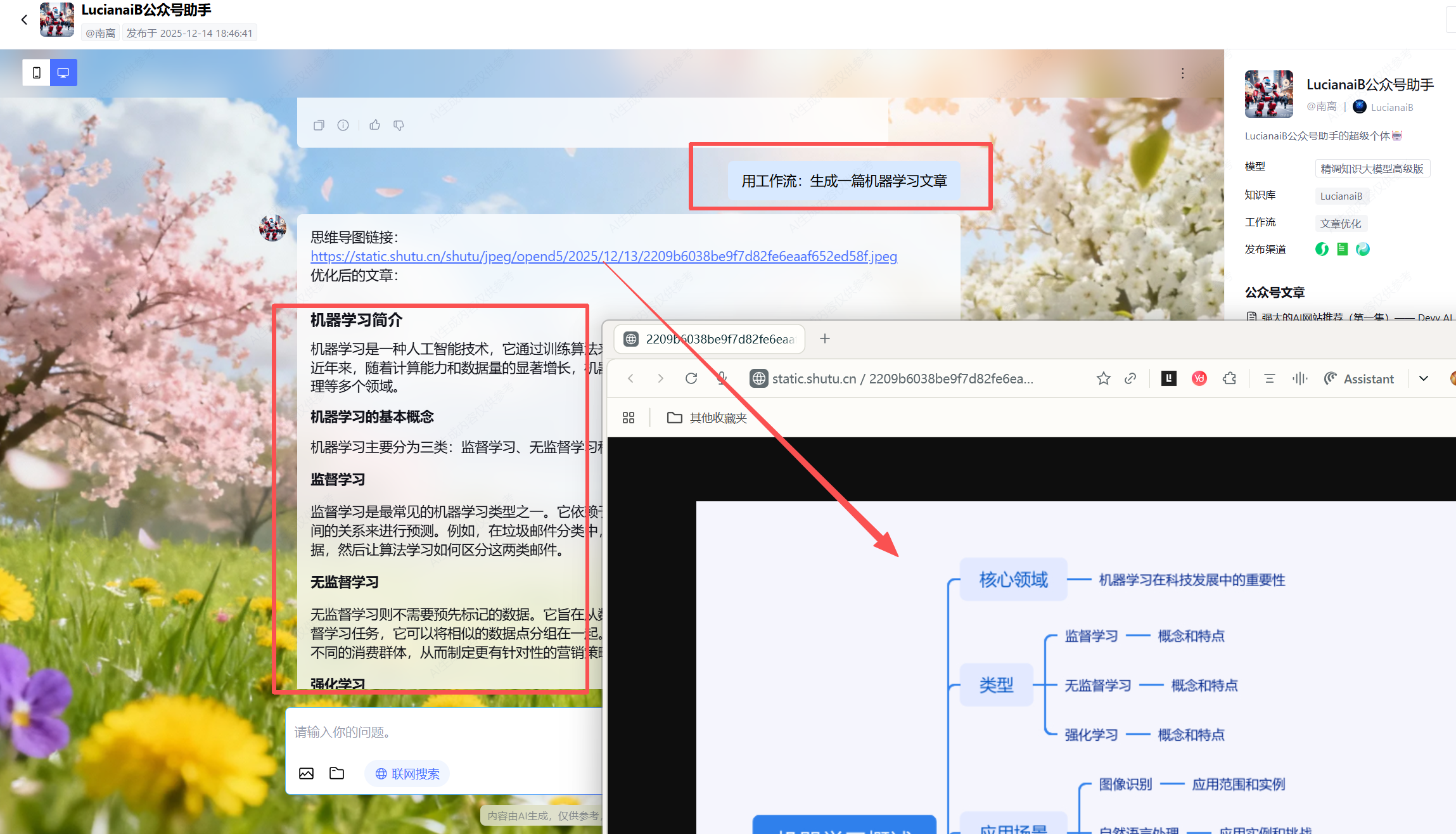 2. 内容生成 + 思维导图:一键产出带逻辑图的文章