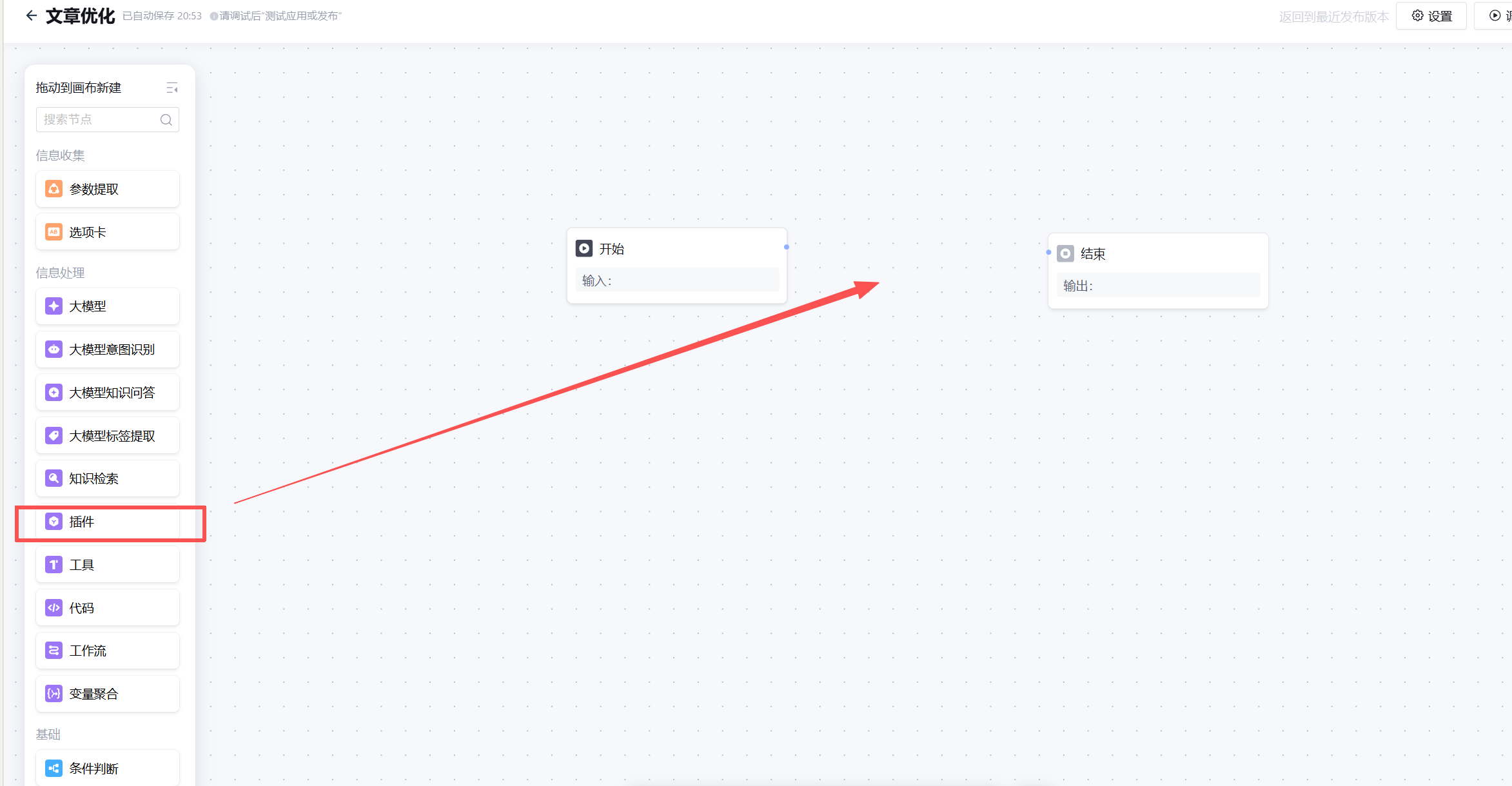 将左侧的插件直接拖到右侧,选择我们在第二步接入的思维导图MCP。