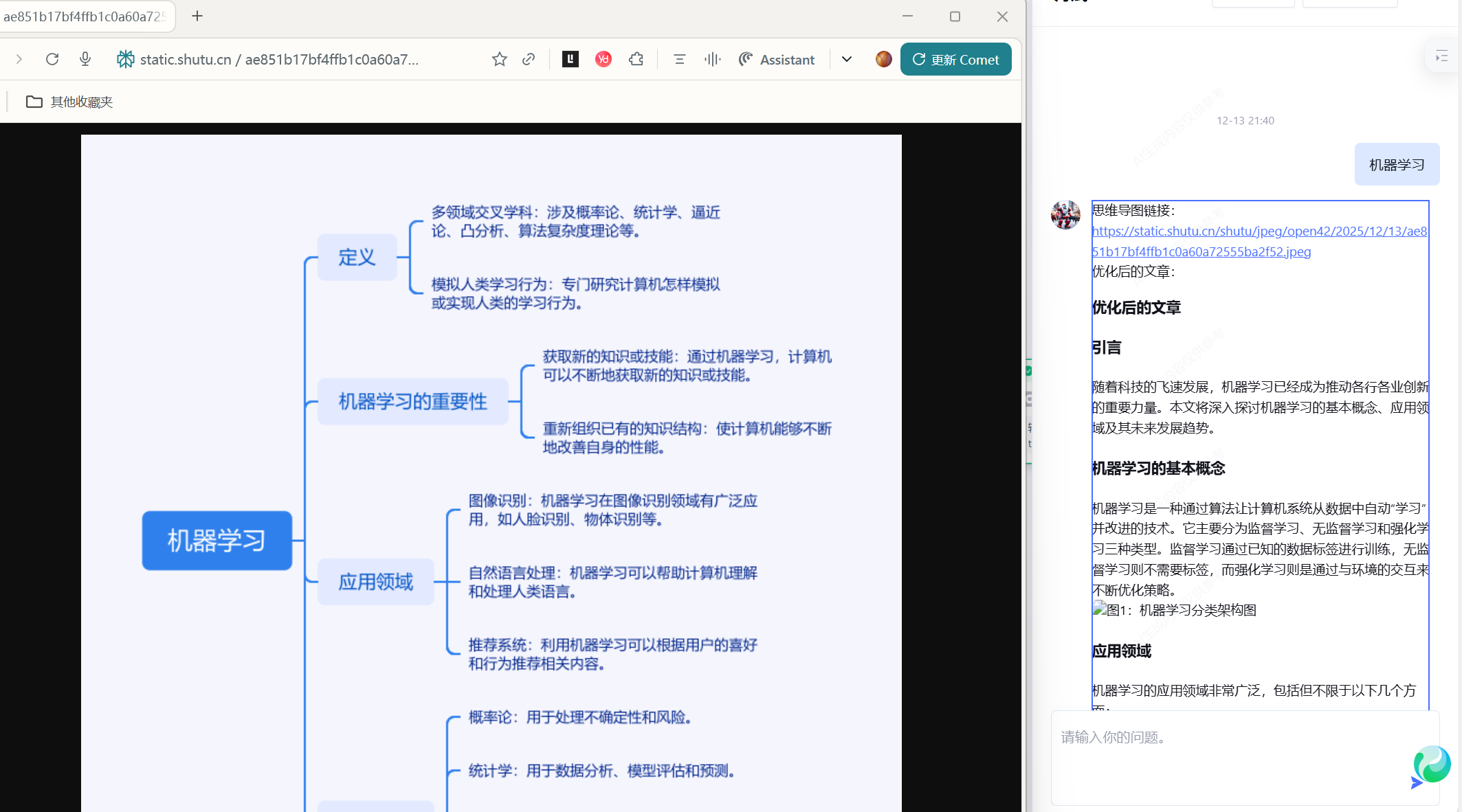 可以看到成功的生成了一个思维导图,以及优化后的文章。