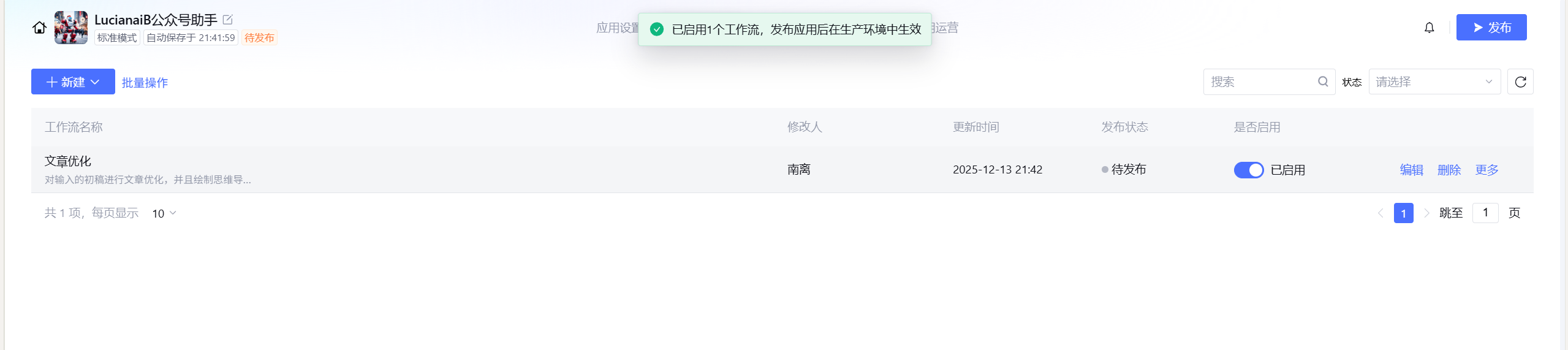 - 工作流必须依附于智能体发布,不能单独上线(初期易混淆)