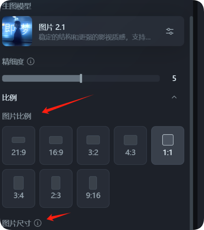4 | 选择分辨率、风格、图片比例等参数 |