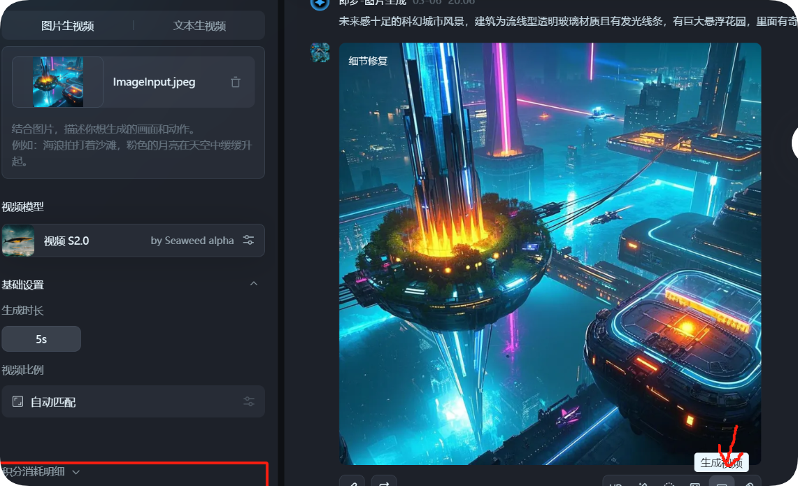 如果生成的结果不符合预期,可以根据具体情况调整提示词,再次进行生成。例如,如果觉得画面不够科幻,可以在提示词中添加“更强烈的科幻氛围”等描述。