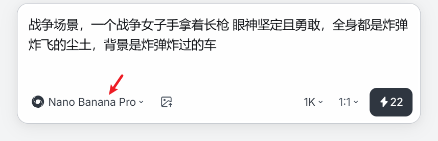 ② 选择 “nano banana PRO 模型”,粘贴简单提示词
