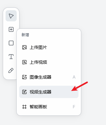 ① 打开lovart,左侧点 “+号”,选择 “视频生成器” 的选项