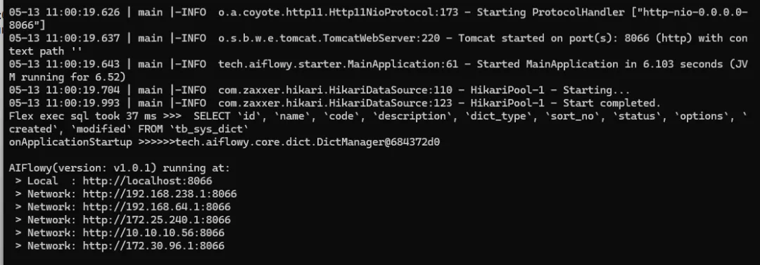Cmd 输入:java -jar aiflowy-starter-1.0.1.jar