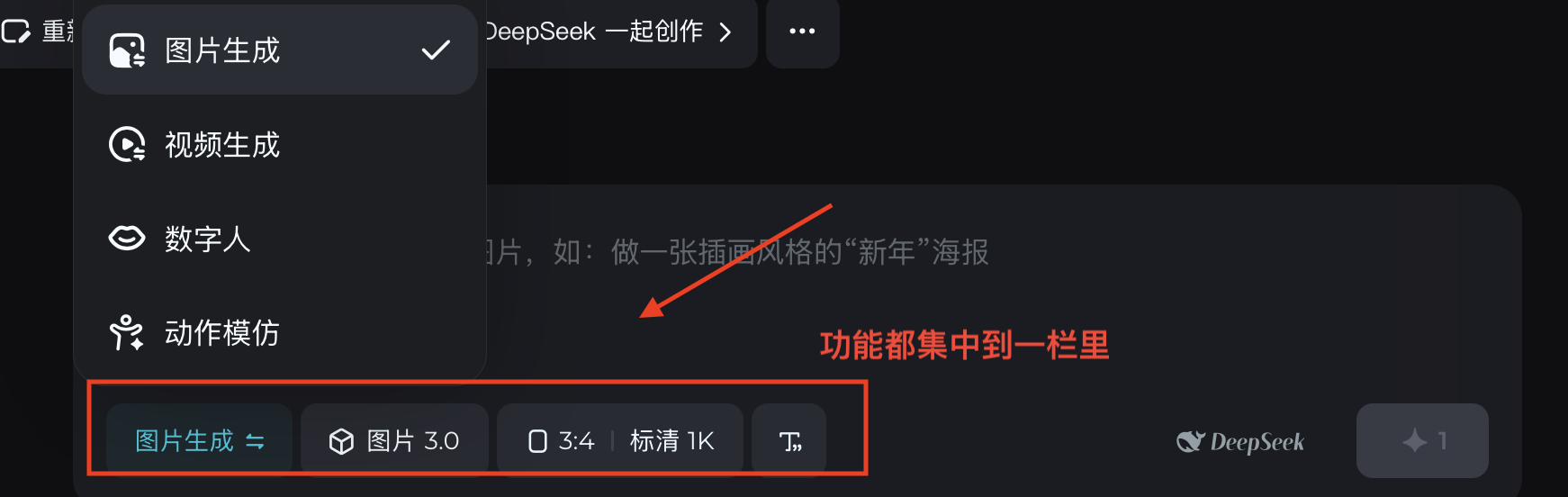 最近即梦AI的网页改版,从原来的左右布局,换成了上下布局,功能框更集中了。