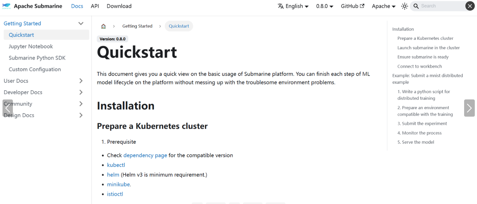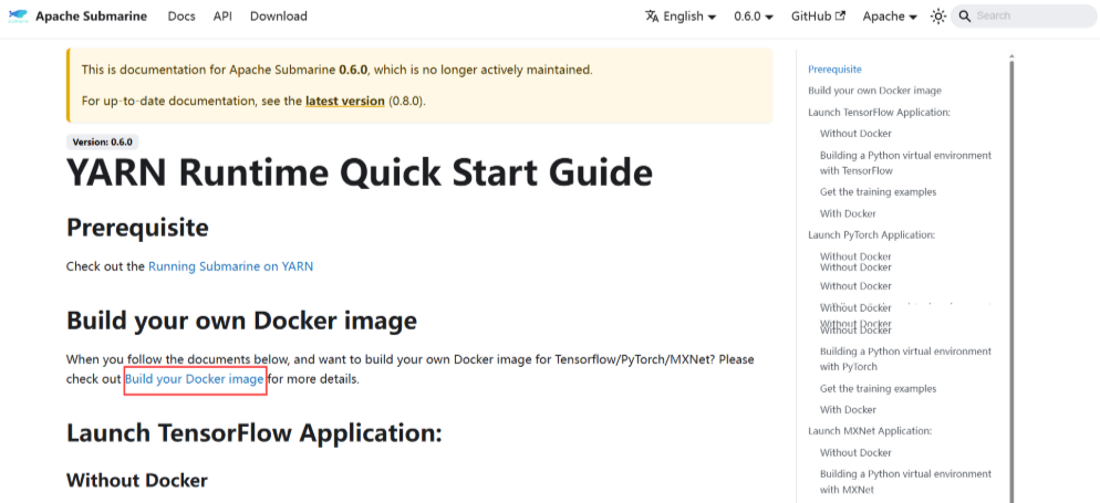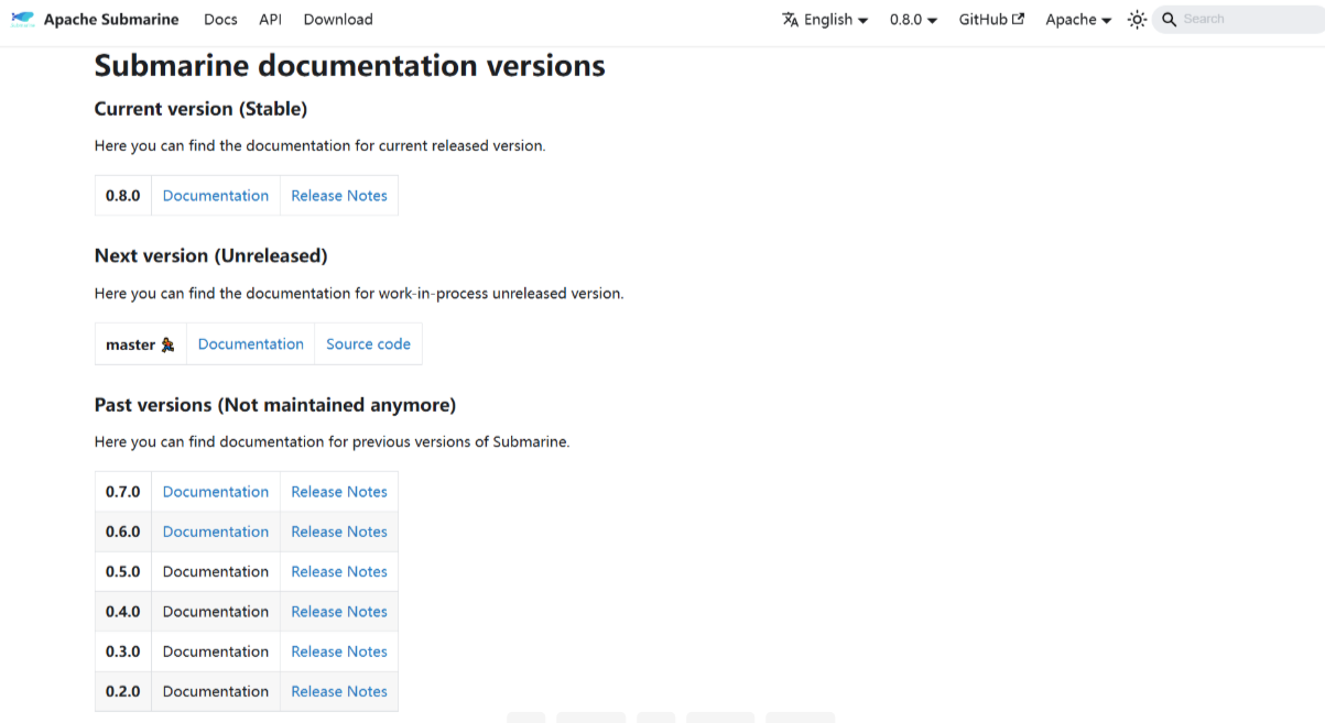 Submarine 官网地址:https://submarine.apache.org/versions/