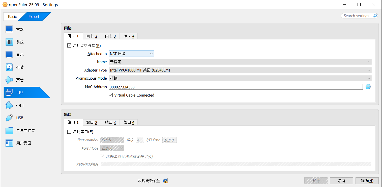 安装程序很贴心地检测到了我的网络连接,我设置了主机名为my-openeuler-dev。