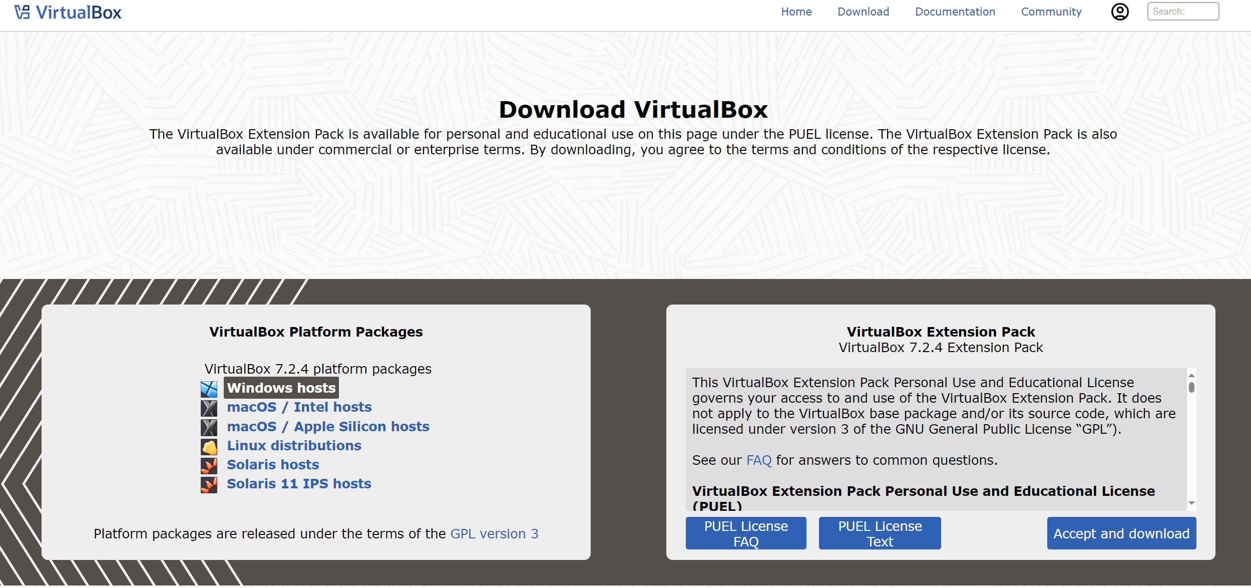 - 访问VirtualBox官网(https://www.virtualbox.org/),点击"Windows hosts"下载最新的安装程序。