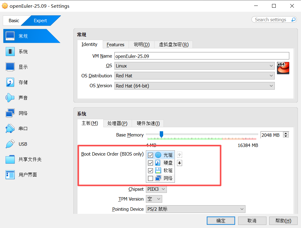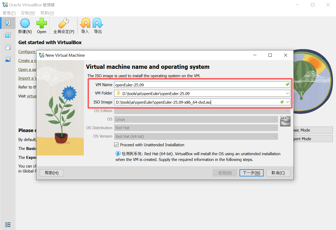 - 输入虚拟机的名称(如"openEuler-25.09")