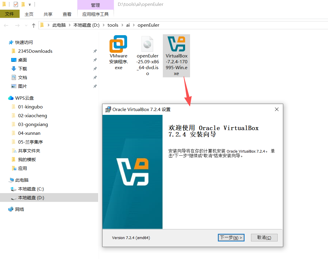 2.双击下载的安装文件(如VirtualBox-7.2.4-170995-Win.exe),启动安装向导。