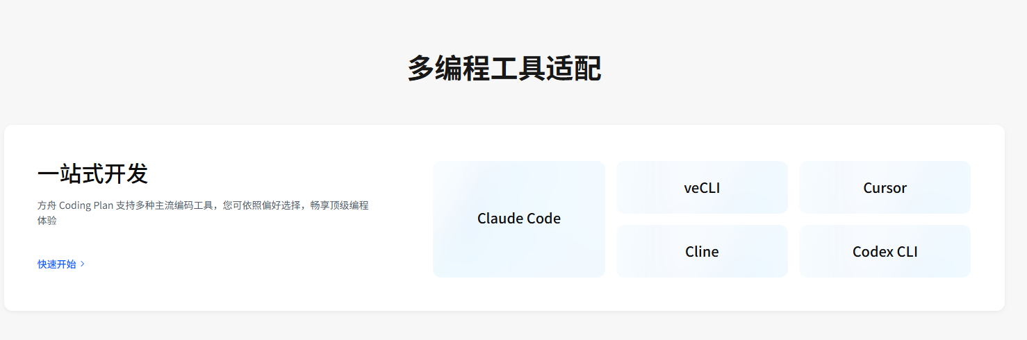 Coding Plan 支持 Claude Code、Cursor、Cline、Codex CLI、veCLI等编程工具。下面以Claude Code为例介绍如何使用 Coding Plan。