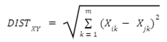 欧氏距离(Euclidean Distance):计算两个对象坐标对之间距离平方和的平方根。