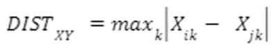 切比雪夫距离(Chebyshev Distance)——计算对象对之间差值的绝对值的最大值。