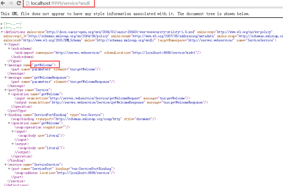 页面显示 WSDL 内容 → 右键另存为 → 保存为 service.wsdl