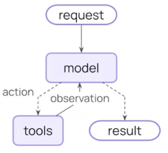在底层实现上,create_agent 基于代理循环模式(ReACT)构建图——通过传递给大模型提示词和可执行工具列表,让大模型自行选择工具并自主决定调用工具的方式(串行、并行等),并在获取足够信息后由大模型自行结束流程。