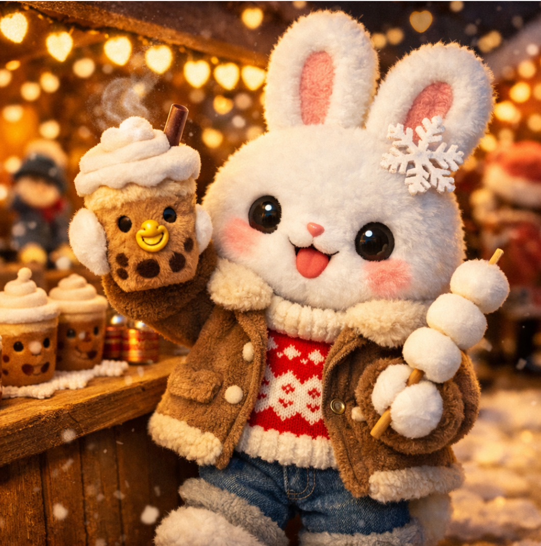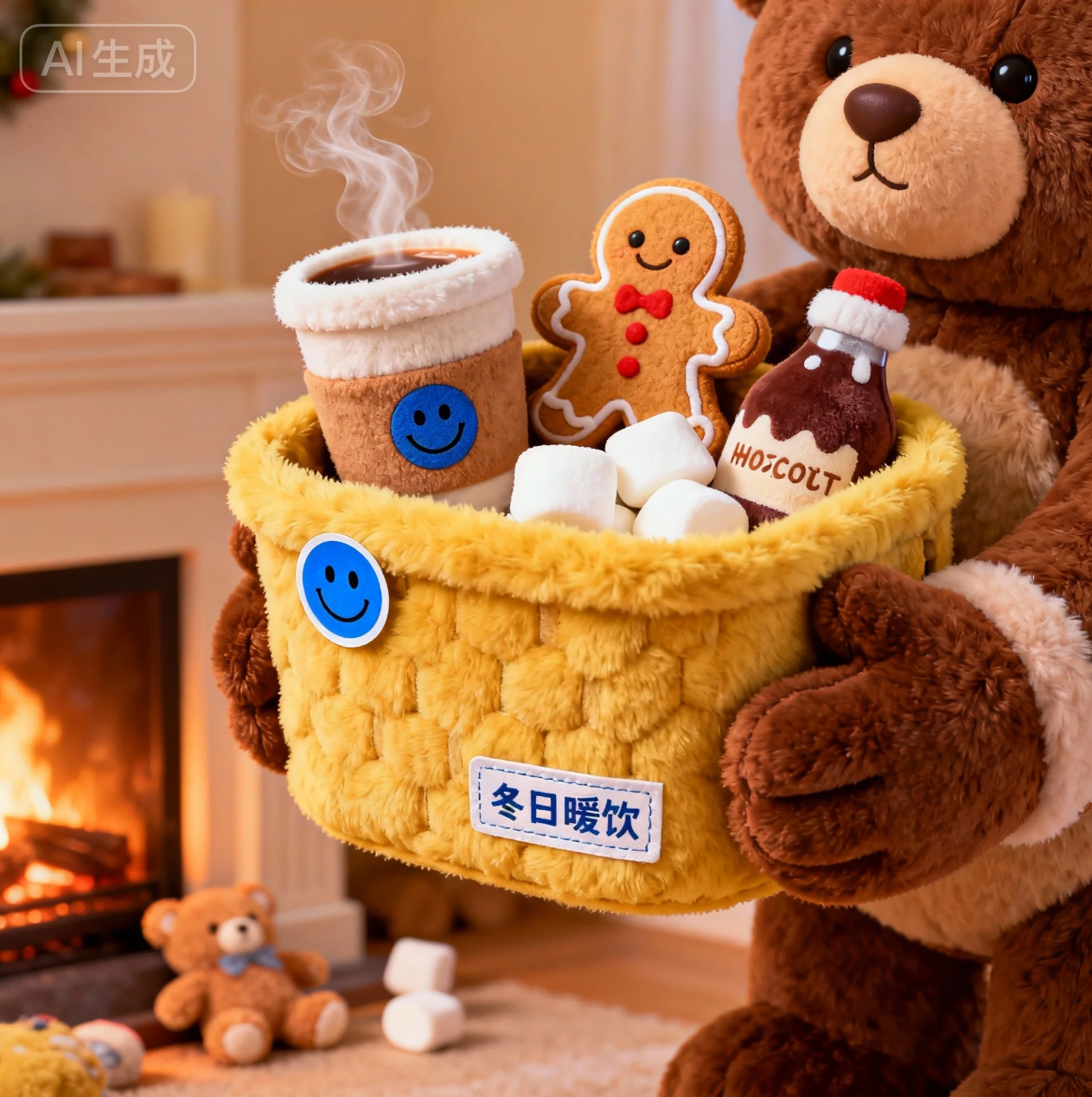 - IP融合:将毛绒元素与奶茶店主题结合,加入如“冬日饮品”“温暖奶茶”这样的品牌标签,确保每个设计都能体现品牌特色。