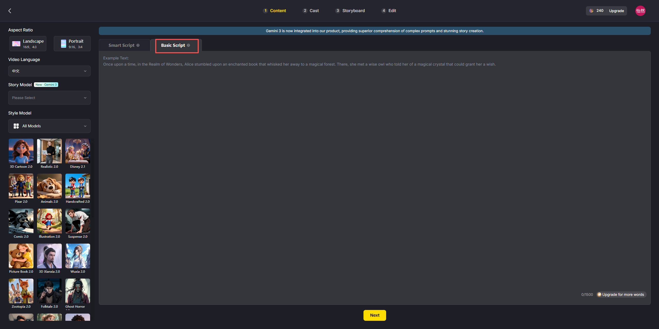 Step1:MagicLight AI——搞定脚本、分镜、静态图+旁白