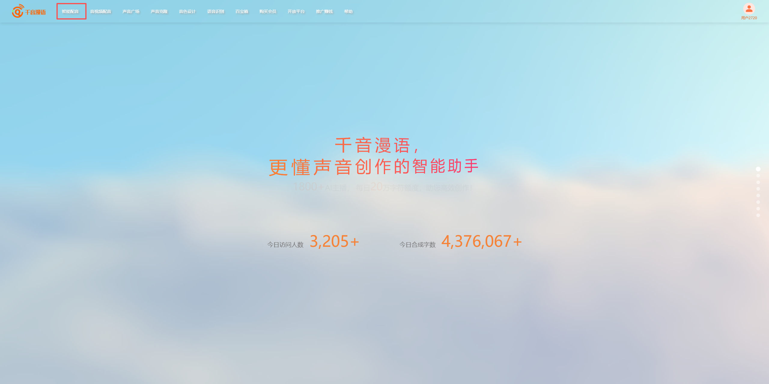 - 打开千音漫语官网,选择“智能配音”,在文本输入框中粘贴MagicLight AI生成的旁白文本;