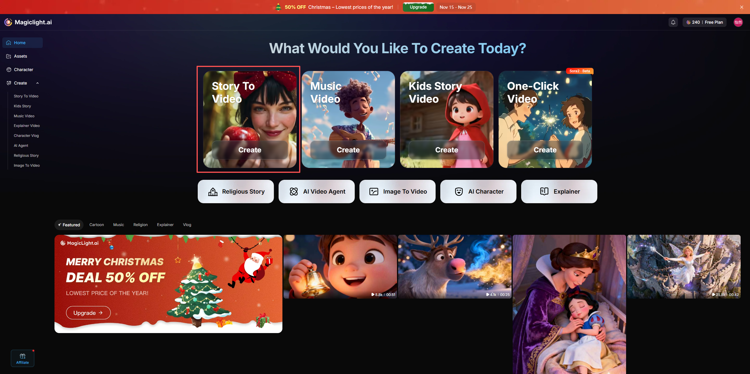 MagicLight AI | 生成脚本/分镜/静态图/旁白 | 不会写悬疑剧情、不会画分镜、人设统一难 | 每日赠送免费积分,只生成图片完全够用 | |