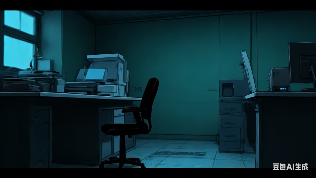 1 | 主角发现恐怖协议文件 | 动漫风格悬疑惊悚动画分镜,昏暗蓝调色调的深夜互联网公司办公室: 远景镜头展现空旷压抑的办公室,浅金发主角独自坐在电脑前,周围是闲置的办公桌椅,背景窗户外是深蓝夜色; 镜头推进至电脑屏幕特写,显示公共驱动器里的 “夜间安全协议” 文件弹窗; 主角低头阅读文件第一条时,头顶荧光灯突然闪烁(灯光明暗交替 1-2 次),镜头带过主角微怔的侧脸,整体氛围阴冷、寂静。原比例 |