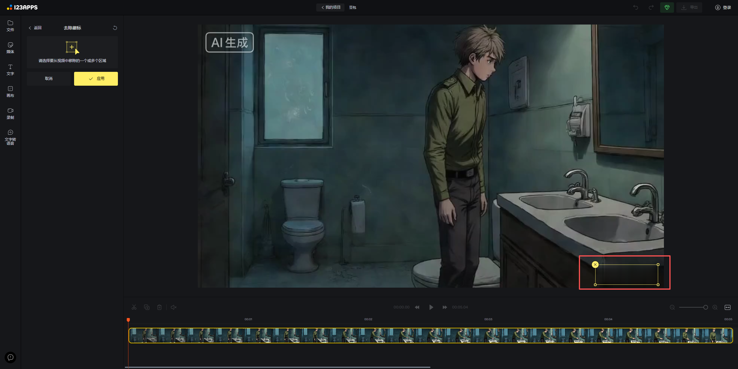 我们用豆包生成视频后,每个视频右下角都会带有“豆包AI生成”的水印,但是如果你想去掉的话,就需要借助去水印的 AI 工具,这里我推荐一款免费工具——123APPs,用该工具可快速去除,且无需登录、不耗费用,画质无损: