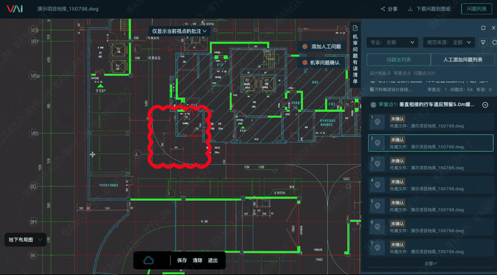 AI审图的“在线审图”,用户通过平台圈注问题可以自动记录位置,并且能与AI审图结果合并输出报告。