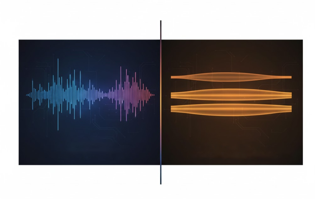 图注:左侧为焦虑状态(高频、短促、不规则),右侧为满足状态(低频、连续、平稳)