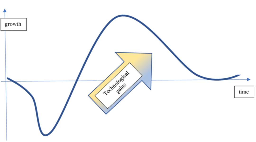历史先例,如电力的普及或IT革命,展示了一种被称为「生产力J曲线」的现象。