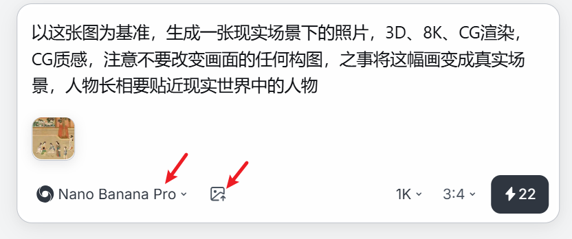 2、上传古画截图:点击“上传图片”,把第一步保存的截图传上去,输入提示词(直接复制!):