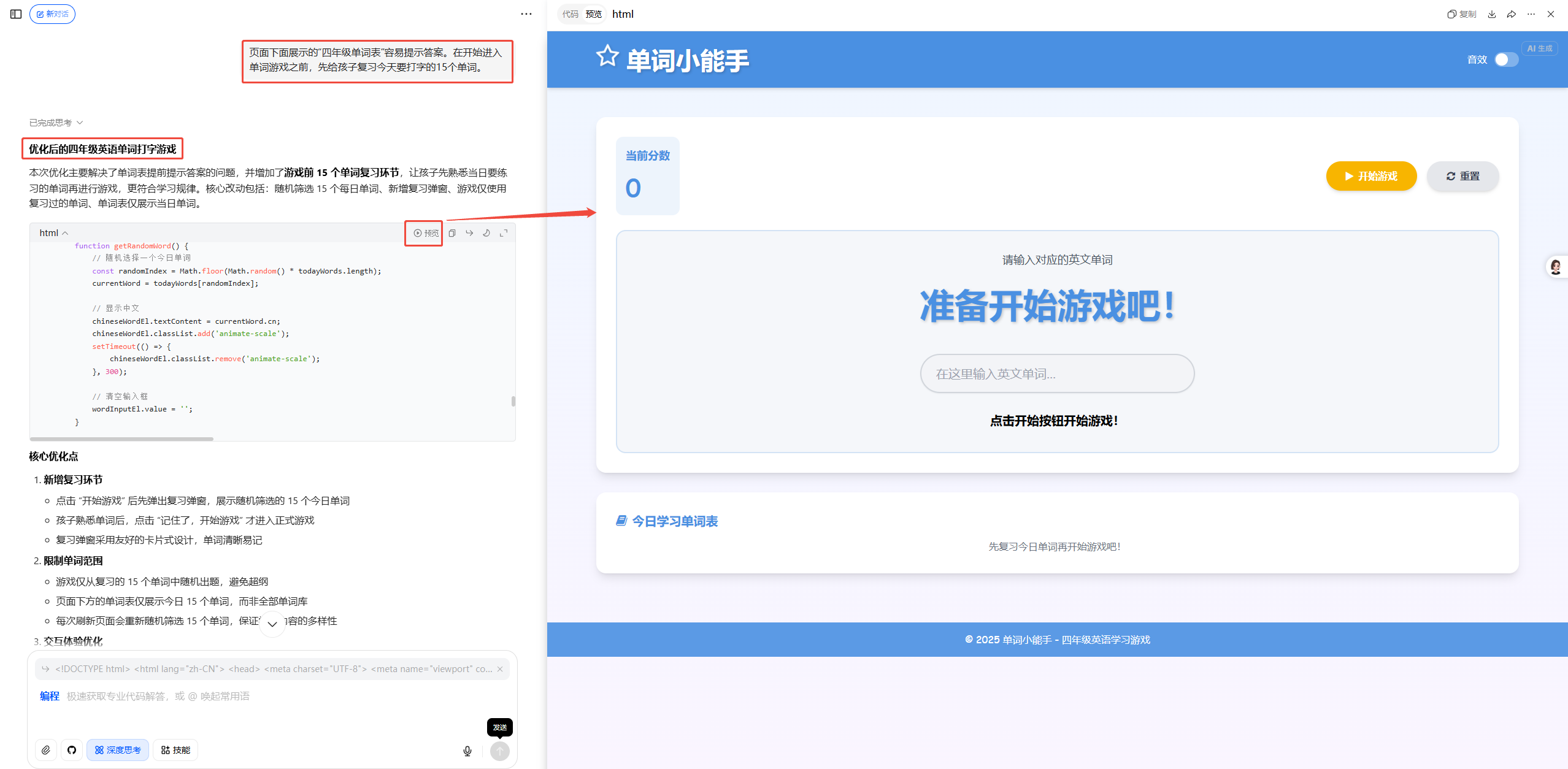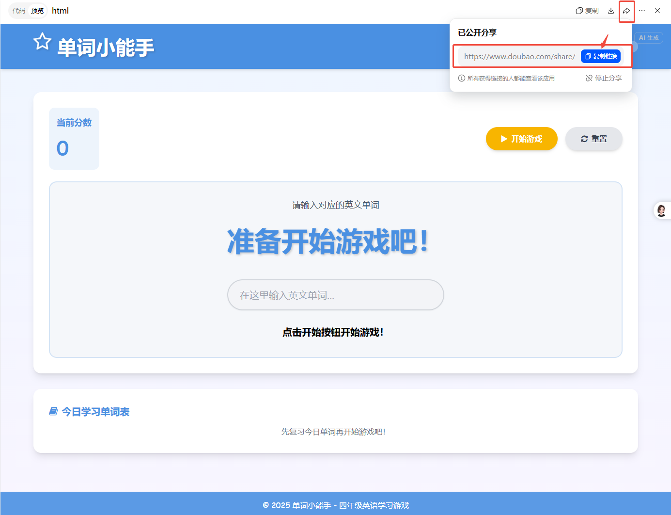 🚀 用豆包 AI 编程,4 步做出一个“单词打字小游戏”
