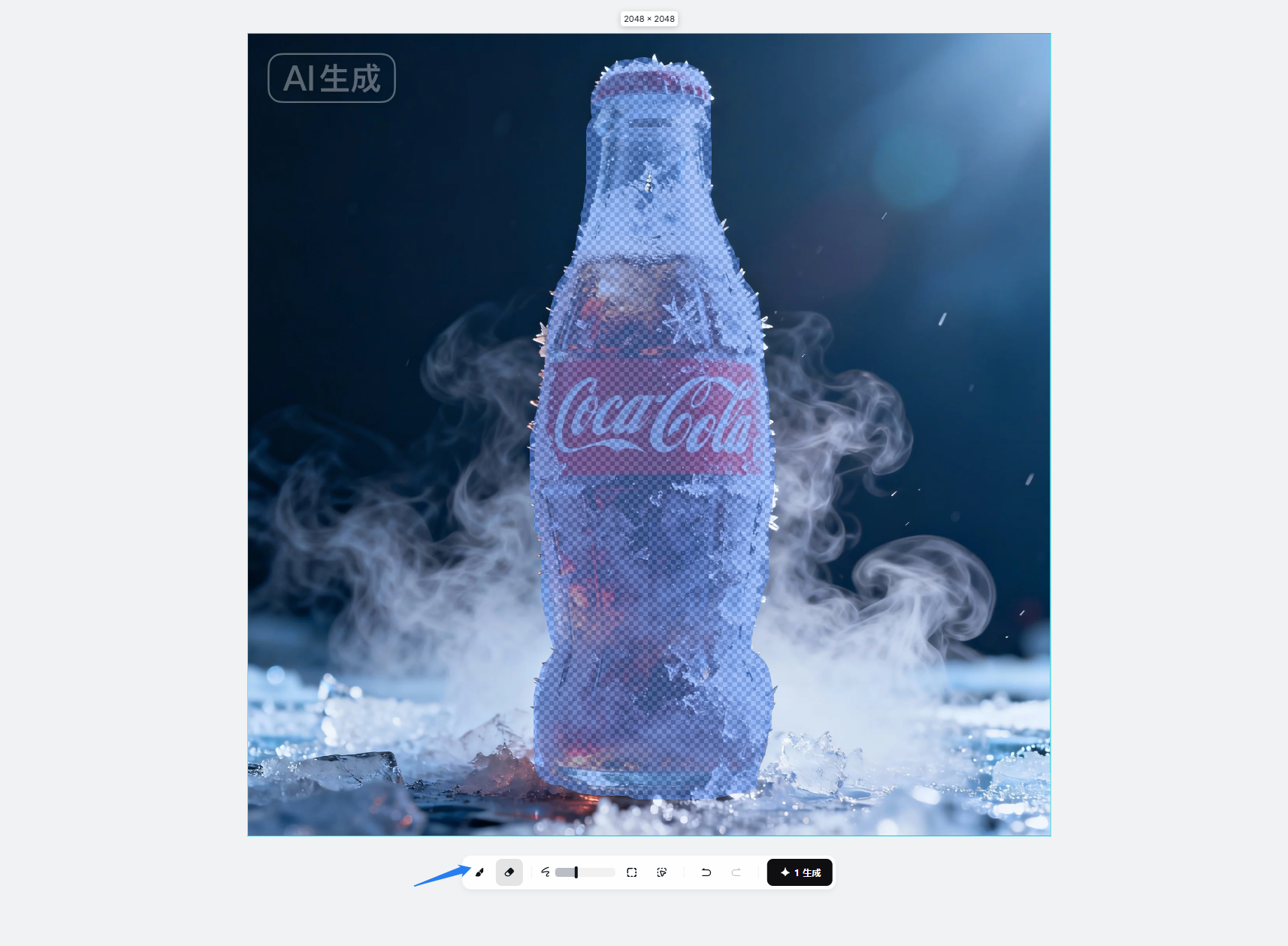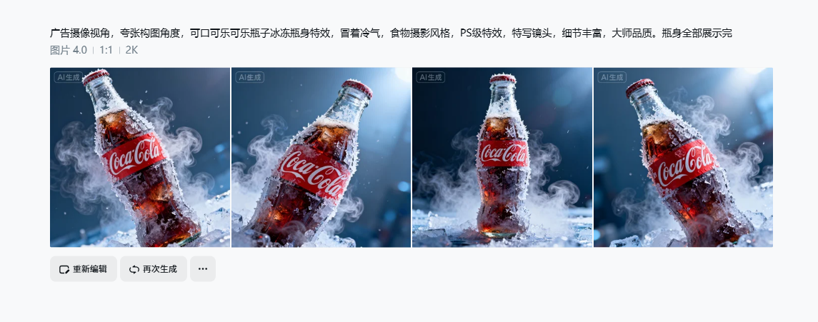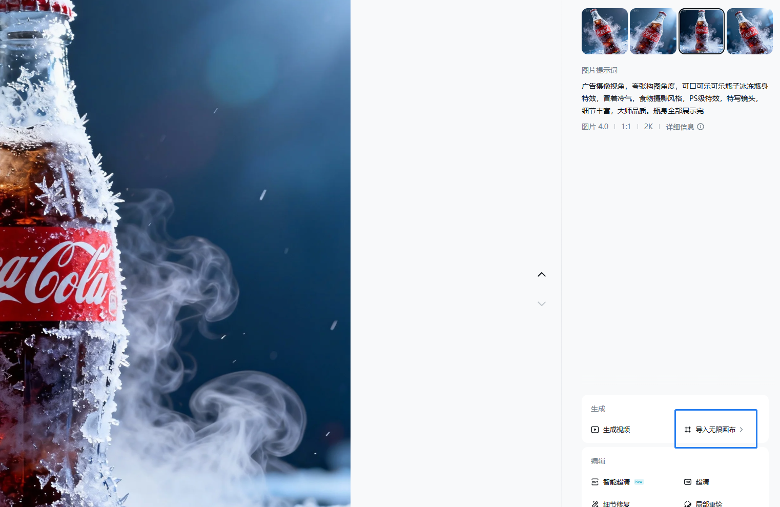 打开即梦工具,通过提示词生成一张可口可乐瓶子的特效图片