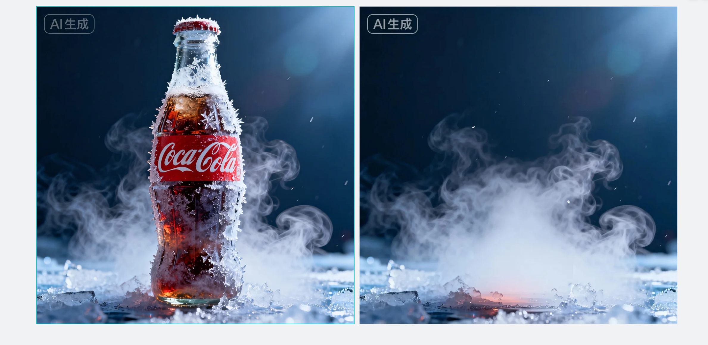 ②将画面中的可口可乐瓶子完整消除,只保留带有冰冻冷气效果的背景部分;最终得到一张无产品、仅保留主题背景的图片,作为后续添加Logo的基础素材。