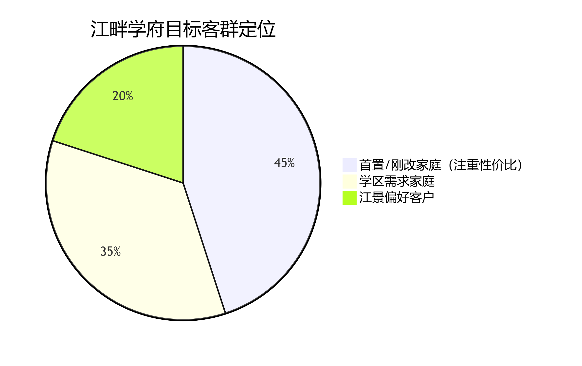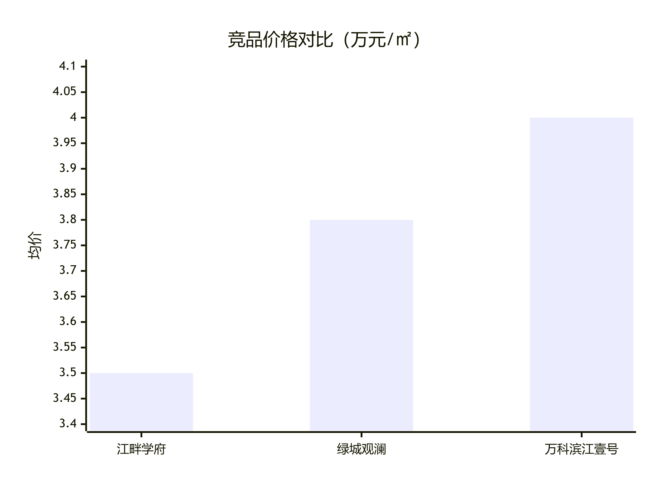 江畔学府 | 35,000 | 90-120㎡ 三房 | 1. 江景资源 + 学区配套 2. 户型紧凑,总价门槛相对较低 3. 重在性价比 | 1. 品牌力较竞品较弱 2. 社区规模可能较小 3. 装修标准或低于竞品 |