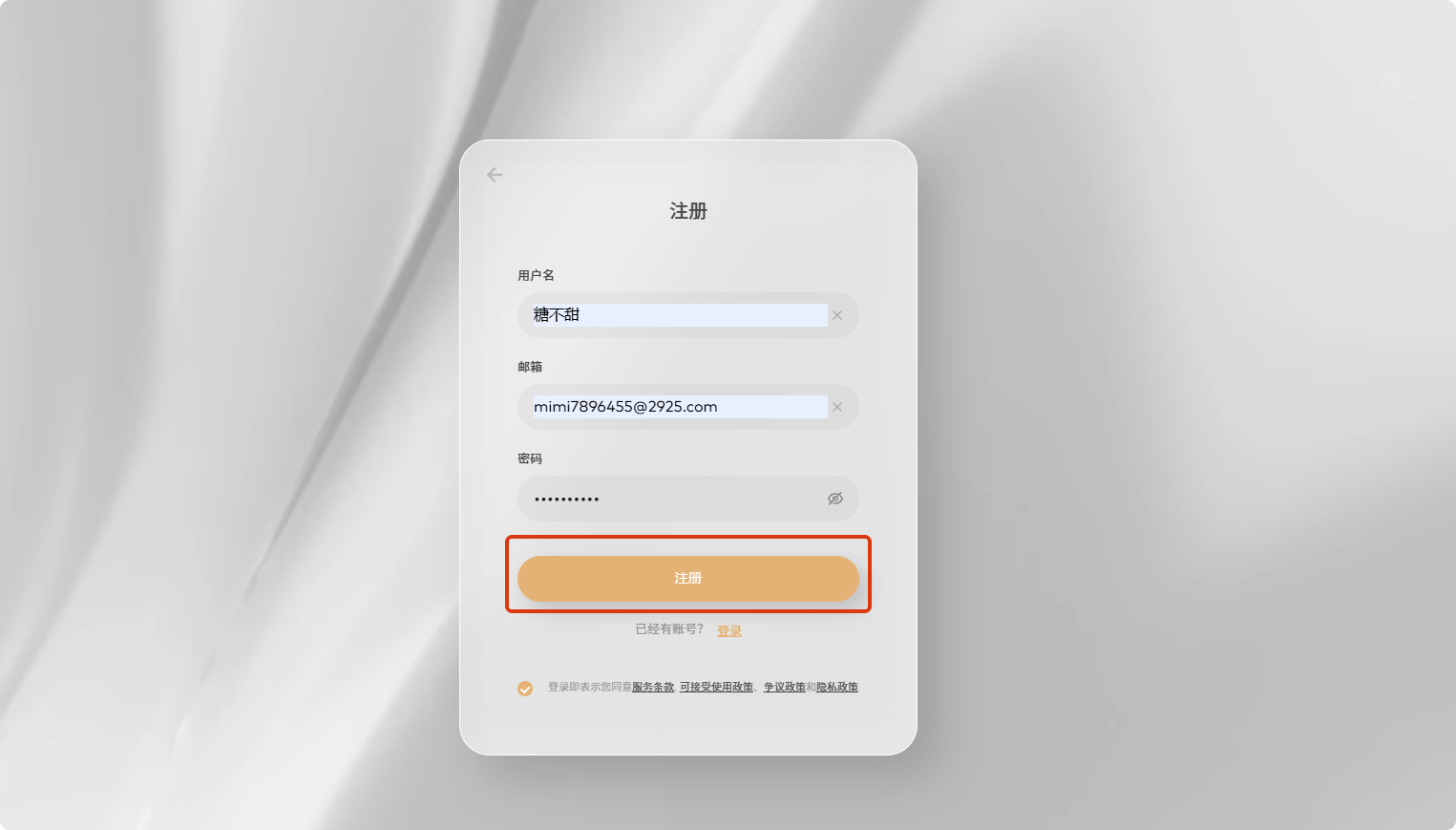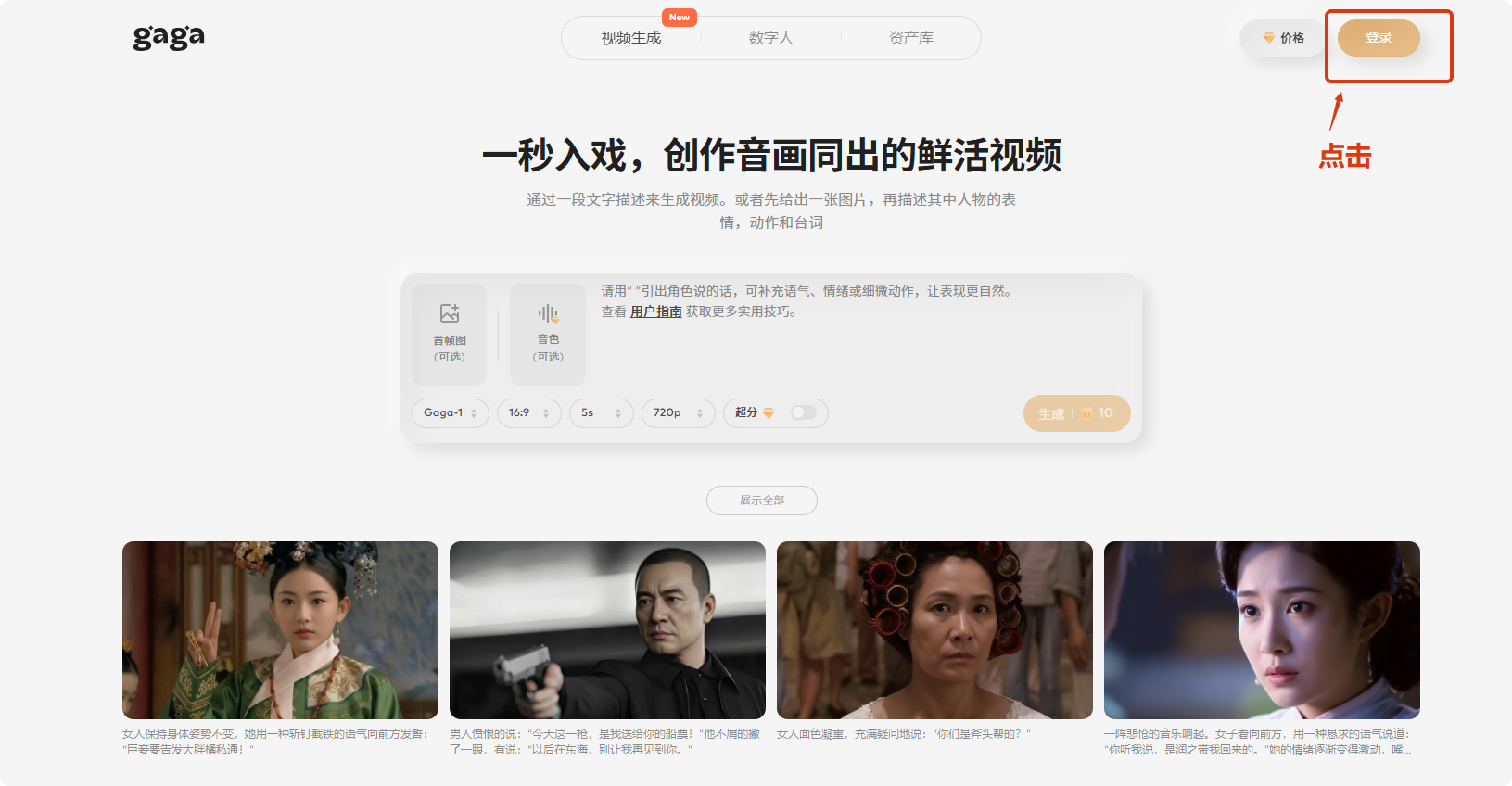 第一步:进入Gaga AI,点击登录,转换为注册。