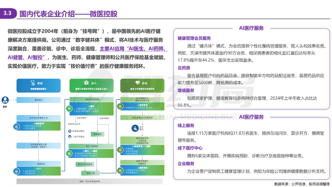 产业端,微医控股、讯飞医疗、京东健康、腾讯健康、华为、蚂蚁集团等巨头正积极布局,一批初创企业也正在细分领域推出差异化产品。