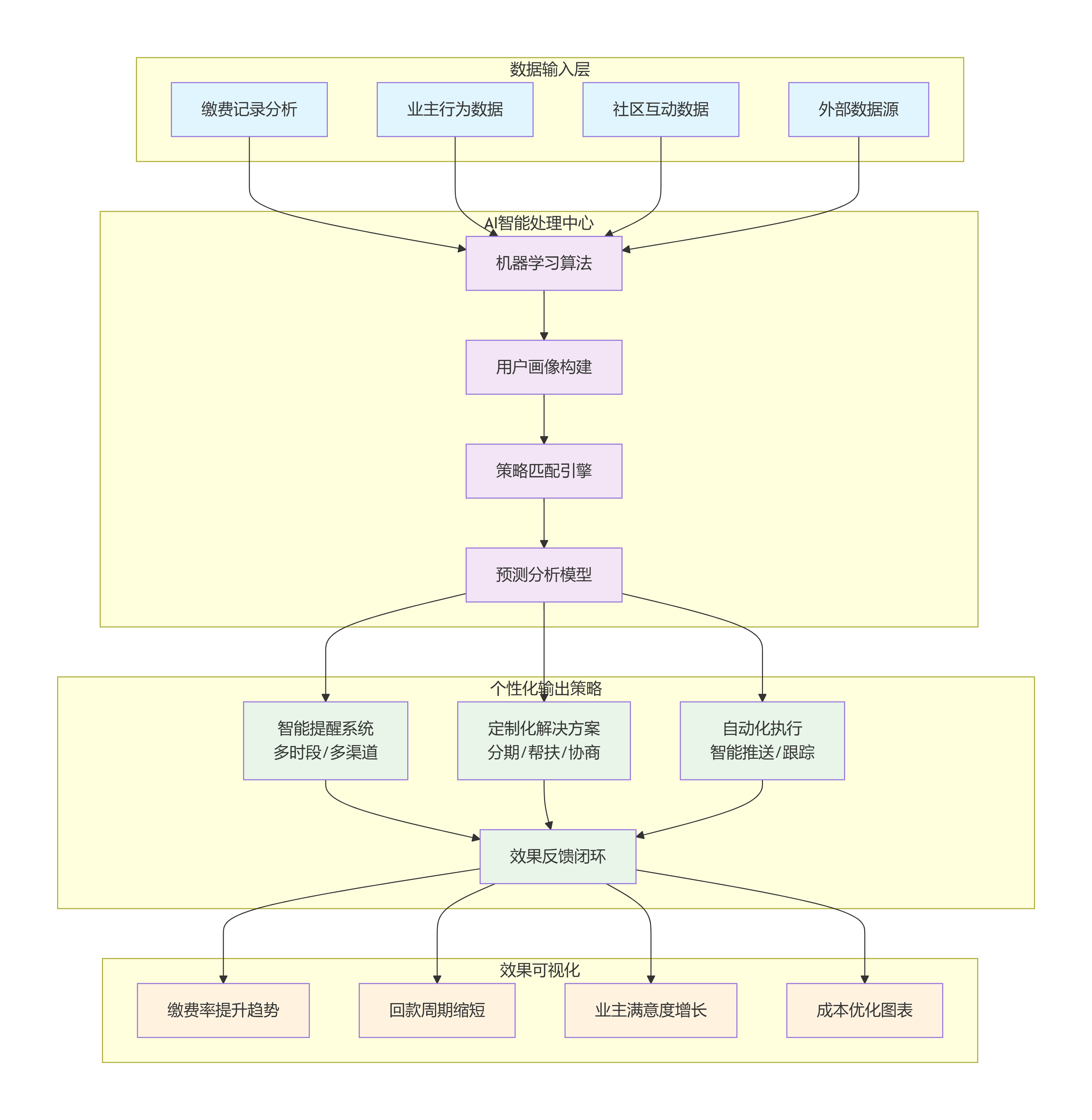 AI模型基于业主行为画像自动匹配催缴策略,实现“千人千面”: